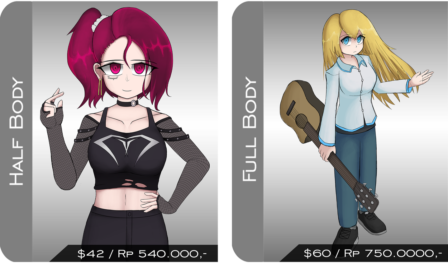 • Prices may vary depending on how complex the drawing is (including background)• Please provide clear references and as much as possible• Multiple characters will still increase the price normally• Revision can be done, as long as it's not too much• If you're interested, contact me through DM! (Twitter or Discord)