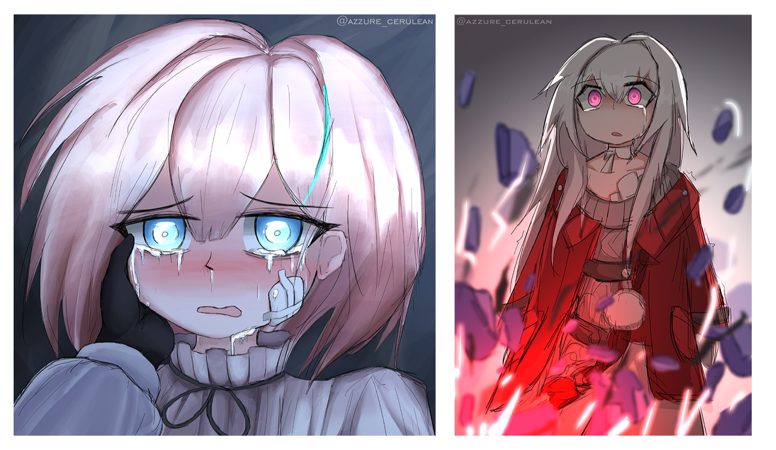 Just visit my azzure_cerulean account! Twitter is the best place to check all of my past drawing. If you REALLY wanna dig deep down into my older drawing, you can visit my discord server and check #cerulean-old-art channel (though tbh idk why you would want to)